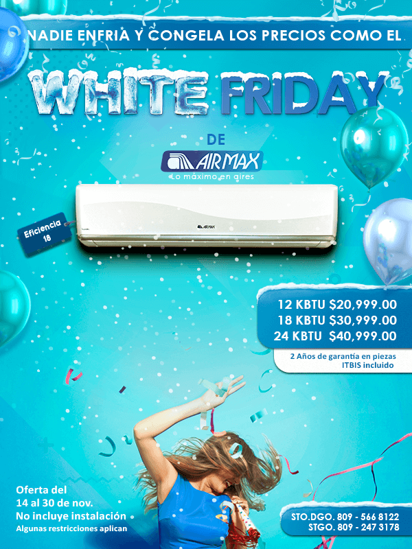 Descuento en aires acondicionados. Válido del 1 al 30 de noviembre.