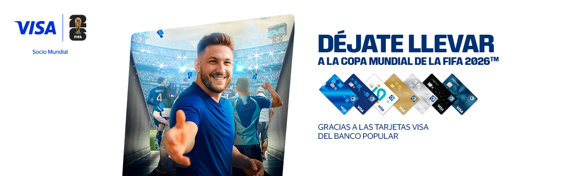 Déjate llevar y sé uno de los 127 ganadores junto a un acompañante en vivir la pasión por el fútbol con tus tarjetas Visa del Banco Popular y Popular Bank.